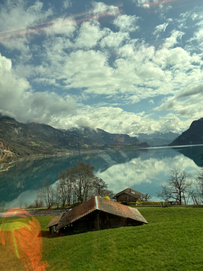 在瑞士🇨🇭黃金列車上沿途的風景 韓劇 愛的迫降 取景地 渾然天成的大自然景色 湖畔旁竟有一座小矮房座落 感受到不受拘束的生活 讓人想在這生活 享受陽光☀️與新鮮空氣