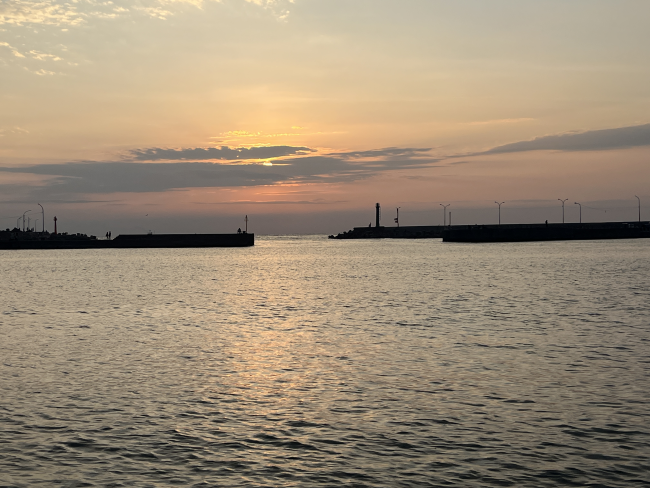 高雄彌陀海岸光廊 在長椅上看日出和日落 吹吹海風不熱 還可以看辛苦的漁民們出海和歸家